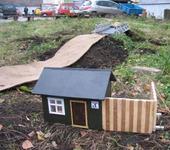 На днях планируется завести песок на эту площадку, будет уже проще.