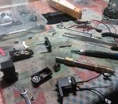 Сверло по дереву спиральное 6мм, трубка алюм. 8мм, трубка медная 10 мм, шарики 2.5мм - 2 шт , ну и всякие шелобухи. в посте № 9 можно рассмотреть часть механизма крепления в серве. Сверло и канавка отшлифованы, отрезано в размер на конце припаян упор (чтоб не выскочило при случайном выходе из крайнего положения, упрётся в шарик) Шарику не даёт выпасть медная трубка. ну я думаю что механизм понятен.