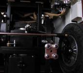 Да “башмаки” это так, примерка))) Там не магниты, а пластиковые мебельные шайбы, обрезанные (по форме квадрата) и прикрученные к раме, на них “башмаки” насаживаются и держаться лучше чем на магнитах:). Они с прицепа тамиевского, резиновые, потом буду делать пластиковые и кронштейны заодно. А разъемы это болтики, гаечки и втулки из крепежа обычной сервы(идут с ней в коплекте). Радиатор, если интересно, это из партворка Т-34-85. Сейчас как раз в продаже еще один(их там два) появится. По масштабу более-менее подходит.