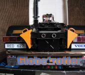 В общем, пересмотрел я концепцию “американца”)) Удлинил еще раму(теперь 81см)), обрезал крышу, убрал наклейки, добавил черного:) Знакомый посоветовал прицепить третью ось сзади, вписалась вроде нормально. Пока просто висит, может потом сделаю рабочей. Ну и по мелочи: антенны, спойлеры, ящики, воздухозаборники на капот… Пока еще в процессе.