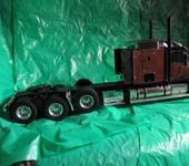 Можно было, конечно, и в “Фото ваших грузовиков”, но решил тему открыть, поскольку процесс доработки не закончен, да и хотелось не только фото, но пояснить что и как, но без фанатизма))). Ну и лишняя тема не помешает, в нашем застойном разделе:) В общем, имеем тамиевские Вольво и Кнайт Хаулер. Что с американцем: вставка в раму 8см, ну и кардан, соответственно удлинен, замена глушаков( полированный алюминий), доп зеркала, немного “облагородил” зад:), ну и всякие финтифлюшки понавешал. Теперь Вольво, тут поболее изменений. Полностью переделана компановка по сравнению с инструкцией: рулевая серва нашла новое укромное место)), коробка заблокирована на первой передаче, вторая серва не к чему; вибрация прикручена к раме, замаскирована)); управление МФЦ-3 так же закреплено на раме; добавлен бак, пневмо резервуар, всякие украшательства. Колонка занимает весь салон, поэтому внутрянки нет, для меня звук важнее. Извиняюсь за сумбурность). Оба тягача не закончены(винтики под лобовым Вольво, конечно, закрашу)), по мере продвижения буду освещать процесс.