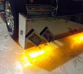 Вид снизу. В правой ступени выключение аккумов от борт. сети и гнезда их зарядки. Поставил задний бампер. На фото включен только доп. свет.