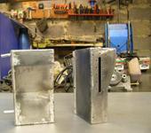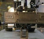 Приветствую. Теперь не много о баках. На большом в одном баке диз-топливо, в другом масло для гидравлики. На моей модели в двух баках масло. На одном баке установил заливную горловину,окошко уровня масла и трубку слива обратки. На другом трубка забора масла из бака на насос. Оба бака соединил между собой в нижней части баков. На обоих баках на дне сливные пробки. Общая ёмкость баков 170мл. Так-же на баках прикручены лесенки. Материал сталь 0,7 и 2мм. 2мм верх, низ и лицевая стороны для того что-бы можно было нарезать резьбы. Баки сваривал своей новой аргоно-дуговой сваркой, пока только её(сварку)осваиваю. В основном, там где детали подходили друг к другу в стык под90гр, сваривал сплошным швом. Но заднею стенку к боковинам(буквой Т) пришлось прихватывать на точки и потом пропаивать оловом. Ступеньки лесенки сваривал сваркой, а к поручням припаивал. Окошко полоска лексана посажена на герметик и прижата винтами через пластину 2мм. Вроде по бакам всё пока.