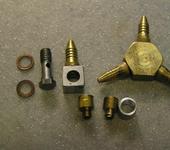 Приветствую. Георгий правильно подмечено, это я ещё не показывал. На фото основные компоненты моей системы. Дюралевые крышки штуцеров имеют внутренний бортик под конус для поджатия трубки. Тройники как для подачи под давлением, так и для обратки. Два варианта. Отличия в штуцерах. Насос обычного типа, шестерёнчатый. Цилиндры не сложные, материал латунь. Распределители поворотного действия. В основном всё.