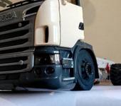Честно говоря от чего колеса я не подскажу,задние от трофи… передние от шоссейки…опасался ,что будет разная скорость вращения, но предварительные испытания показали, что на второй передаче стоковой КПП…все работает нормально…! Как я писал ранее… это эксперимент…а он …эксперимент покажет:) Возможно понадобится дифференциал…! Ну сейчас задача в другом - собрать наконец-то модель из разных частей в единое целое! А потом буду дорабатывать напильником 😁.