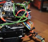 Дымогенератор работает от мощности – даю больше оборотов – получается больше дыма. Подключается он последовательно в цепь общего питания и в цепь управления между регулятором и приемником. Разъемы пришлось перепаивать под тамиевский.