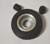 Расскажу коротко о технологии изготовления: На принтере на листах А4 печатал чертеж развертки рамы. По нему размечал ее, кернил места под отверстия, и потом вырезал ножницами по металлу. Гнул в больших тисках по разметке. Зажимал между двух пластин толщиной около 6 мм, и гнул третей пластиной, выстукивая молотком. Там конечно не все так гладко вышло как хотелось. Сейчас для этих целей делаю гибочный станок. - Форму для колеса делал на 3D принтере. Формовал в нее силиконовый герметик (черный) смешанный с крахмалом 1к1. По ощущениям шина очень жесткая, похожа на резину.