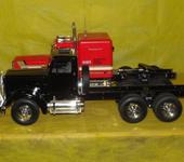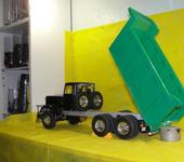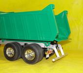 В планах постройка трёхосного прицепа для 1/14 Tamiya King Hauler dump truck (самосвал), примерно такого вида, смотрите пожалуйста изображение внизу, с одинаковыми кузовами, как на самосвале, так и на прицепе. Все запасные части и детали необходимые для постройки прицепа есть в наличии, сначала необходимо построить опытный образец самосвала, исходя из его размеров расчитать для него соответствующий прицеп, чтобы было всё, как бы одно целое, конструктивно, технически и внешний вид самосвала и прицепа не имели явных отличий. Опрокидывание кузова пока планируется только назад, подъёмный механизм типа “гайка-винт”. Для начала хотя бы программу “минимум” выполнить в реальности, а дальше будет видно.