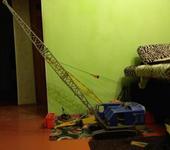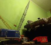 оборудовал корневую секцию “успокоителем” для грейфера и указателем угла наклона стрелы. примерка головной секции стрелы.