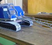 оборудовал корневую секцию “успокоителем” для грейфера и указателем угла наклона стрелы. примерка головной секции стрелы.
