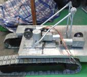 чтобы сделать нужное расстояние от платформы до гусениц, изготовил из 20мм текстолита вставку между шасси и ОПУ.