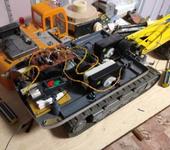 тему по Hobbi Engine почему то закрыли,а поделиться хочется,поэтому выкладываю здесь. поставил на экскаватор обратную лопату и решил немного покопать.выяснилось,что 6 в мотоциклетный аккумулятор умер,а штатная 800 мА/ч Ni-Mn батарея уже давно тянет очень плохо. поездив по магазинам,нашёл элементы 1500 мА\ч,и из них собрал новую батарею.при разборе старой батареи выяснил,что в ней “сдох” всего один элемент,похоже что он уже давно начал ерундить и подсаживать остальные. с новой батареей экскаватор начал копать просто изумительно,но возникла другая проблема - стала срабатывать муфта предельного момента на тяговом редукторе. пришлось разобрать экскаватор,и жёстко соединить муфту при помощи винтика с гаечкой,а так же посадить на клей канатный барабан.экскаватор собран и готов к работе.