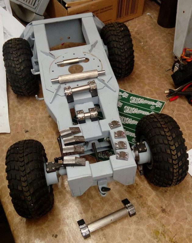 Предстоит сделать шасси с опорно поворотным устройством. Гидронасос, распределители на 10 функций. Гидромоторы целых пять(три) штук(и) - на колеса и поворот платформы и конешно же центральный поворотный коллектор на 8 каналов.
