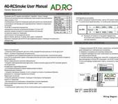 AD-RCSmoke + Руководство пользователя Генератор Модель RC Автомобиль / корабль / цистерна / поезд Автоматическая калибровка и дистанционное управление по 1/2/3 каналам с возможностью выбора скорости образования дыма для различных применений Программируемый режим торможения для остановки дыма при торможении для имитации пламени и индикации состояния и питание от внешнего аккумулятора. Камера 2S или 3S находится в моноблочной конструкции. Защита от перегрева. Дружественное копчение. Дымовое масло может длиться от 6 (макс. дым) до 15 минут (мин. дым) с заправкой. Идеально сочетается с AD-RCO3 + для испускать дым при помощи 4-канального передатчика эффекта запуска двигателя для звукового модуля.