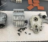 Наиболее красивая КПП с имитацией двигателя - поставляется с двигателем и сервой на переключение передач (фото 2). Этот комплект также с раздаткой на подключение передней и задней оси.