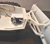 Немного продолжения ! Установил сервопривод для поднятия ковша. Все хорошо , НО как всегда что то не так. В нижнем положении ковша сервопривод ведет себя нормально , но как только поднимет ковш , начинает сильно гудеть. Получается , что вес ковша не дает приводу занять нормальное положение ( стремится опустится вниз ) и поэтому машинка находится в нагруженном состоянии. Буду скорее всего переделывать на винтовой моторедуктор . Пока вот так.