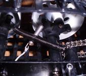 Вперед-то едет нормально, но на заднем ходе балластное сопротивление так душит мотор, что трактор не выезжает даже из безобидных ямок. Придется менять регулятор на электронный. Второй недостаток – при температуре около 0’ снег моментально налипает на ведущие звездочки (но никуда больше!) и трактор перестает ехать, сбрасывая гусеницы.