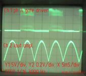 Выход масштабирующего усилителя. Гистерезис не вводил, фазы не крутил. Учитывая бардак макета, вроде, нормально 😃 На драйвере, конечно, бардак, и напряжения не хватает на силе- д.б. симметрично , но это причешется.