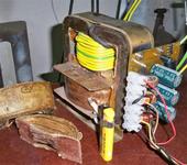 Зажимаем в потную мозолистую ладошку 100 рублей, идем в ближайший магазин электротоваров и покупаем 3 метра медного одножильного провода 6 кв.мм в изоляции.Возвращаемся домой, не заруливая по пути никуда в сторону. Привлекаем сына и он помогает нам справится с концом провода, который продеваем в окна магнитопровода, делая 30 витков. Получается 27 вольт переменки. Я сдуру прикупил на всяк случай 6 метров, но во-первых 3 хватит за глаза, во-вторых витка 3 еще хочу отмотать, сделаю 24 вольта выхода.