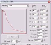 Очень плохо, что большинство комплектов электроник управления станками управляют динамикой станка, задавая только одно линейное ускорение ( ну иногда добавляют еще круговое) и ограничивая максимальную скорость: это Mach, NCStudio, RZNC0501 (и предыдущая 0401, уже ушедшая в историю) и ряд других распространенных систем, то на них мы не можем полностью реализовать разгонные характеристики шаговых двигателей, получив и приличную максимальную скорость, и при этом сохранив разумную динамику ускорений… Если бы брать систему управления, где ускорение задается кусочно-апроксимированно с разными значениями для разных участков скоростей, то можно получить гораздо большие максимальные скорости без потери динамики. Для подтверждения приведу типовую кривую разгона для станка X-10 (800 на 1000), когда он выпускался под системой управления VectorSoft32Mb и драйвера шаговых двигателей запитывались от 36вольт ( там стояли не такие драйвера, а униполярные, т.к. и движки 57 были униполярниками), так вот имея вполне разумное ускорение на начальном участке работы ( в диапазоне скоростей от 0 до 400мм/с - ускорение 600мм/с*с) станок разгонялся до 130мм/с (7800мм/мин) при быстрых перемещениях при типовых характеристиках, в которые заложен танковый запас на безобразное обслуживание станка… В более поздней версии этого станка с другой системой управления, где указывалось одно ускорение на весь скоростной диапазон, то либо скорость пиходилось ограничивать 6000мм/с, дибо ускорение резали до 400мм/с*с, теряя динамику, и при этом не оставалось никаких запасов на не смазанные и грязные направляющие…