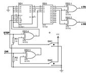 Вот схема управления на доступных элементах. Логика работы схемы выполнена в соответствии с таблицей “Excitation signal time chart. 2-phase excitation”. Собственно SLA7029 включается по datasheet.