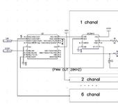 Я тут просмотрел тему, довольно часто спрашивают про схему управления ШД5. Многие начинающие делают схему с резисторной форсировкой, греют помещение! В прошлом году мне тоже попался на глаза такой двигатель и я сделал простейшую схему с ШИМ регулированием с применением PIC16F628. Схема вполне работоспособна,обеспечивает требуемый ток фаз - 3А на фазу, стабильный момент, работет в шаге и полушаге, греется не сильно. Однако обладает несколькими серьезными недостатками - малая частота шаговых импульсов и наличие резонансных зон. Схема устойчиво работает где то до 2500 шаговых импульсов. Это обусловлено шутнированием обмотки диодами - то есть нет быстрого спада тока. В резонансных зонах появляется значительный шум, который снижется демпферированием но не до конца. Из-за этих недостатков откзалася от дальнейших экспериментов со схемой и подумал что лучше перейти на микрошаг с мостовым управлением обмоткками. Но пока еще эту идею не реализовал. Есть несколько интересных наметок. Для начинающих могу предложить легко реализуемый вариант. Можно использовать любой микроконтроллер который может генерировать тактовую частоту 15К-30К и шесть дешовых распространеных микросхем драйверов питания - UC3843. Автоматически обеспечивается нужный ток фаз, защита от короткого, необходимый ток управления затвора полевого транзистора и т.д. То есть сжечь транзисторы практически невозможно! Так как схему делал давно прилагаю только блок схему. Программка для котроллера пишется за полчаса. Необходимо только помнить что лог 1 это выклчено, а “0” - включено. Будут вопросы пишите!
