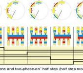 Вобщем как видно в полушаге, какждый второй шаг эдентичен шагам в полношаговом режиме с одной фазой, тоесть есть возможность несколько изменить стандартную схему включения в полушаговом режиме, заменив в каждом втором полушаге однофазовый режим на двухфазовый, подня таким образом мощность, если увеличение мощности не требуется, то при двух включенных фазах можно менять ШИМ режим, снижая мощность в катушках, пока небыло времени на разработку диаграмм на новый тип включения, пока все только в голове, когда нарисую, выложу, а вообще на мой взгляд при незначительном усложнении схемы можно добиться повышения мощности по сравнению со стандартным включением в полушаге.