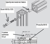 На правом ресунке (пост №18) крепление состоит из направляющей вставки (корторая центрует 2а профиля и болта М16 длинной 100мм. В профеле отверстия внутренние сделанны 13,7мм (помоему) как раз под нарезку резьбы М16. Вот туда он и вкручивается стягивая две детали.