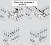 На левом (пост №18) крепление типа мебельной стяжки. Когда ты вставил правый профиль в стяжку то крепление происходит когда ты вкручиваеш конусный винт (смотри картинку).