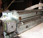 тут видно привод головок дисковода, коловки отрываются, на их место прикручен кронштейн с микродрелью. пружина компенсирует вес микродрели. мотор подачи оси z работает в микрошаговом режиме, один шаг сост. где-то 0.05 мм