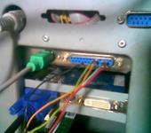 - К клеммам 20 “Шаг” и 18 " Направление" подпаял провода, на другом конце проводов припаял клеммы от ШР-а по диаметру подходящие с отверстиями LPT порта и соединил как на фото (отсчет ног разъема с права на лево 1-я пропущена, 2-я “шаг” 3-я " Направление ", 4-я пропущена, … черный “минус”)