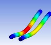При одинаковой массе труба намного жестче, чем пруток. Дело в том, что напряжение линейно увеличивается от центра сечения к его концам, т.е. в центре оно равно 0, на радиусе 1 см - 2, на радиусе 3 см - 6 и тд… Поэтому основную нагрузку берет на себя примерно 40 процентов от величины радиуса. Но слишком тонкая труба может деформироваться не в осевом направлении, а в осевом сечении стать эллипсом. Вот расчет для 12мм трубы толщиной 2мм и 12мм прутка. Деформации и напряжение: