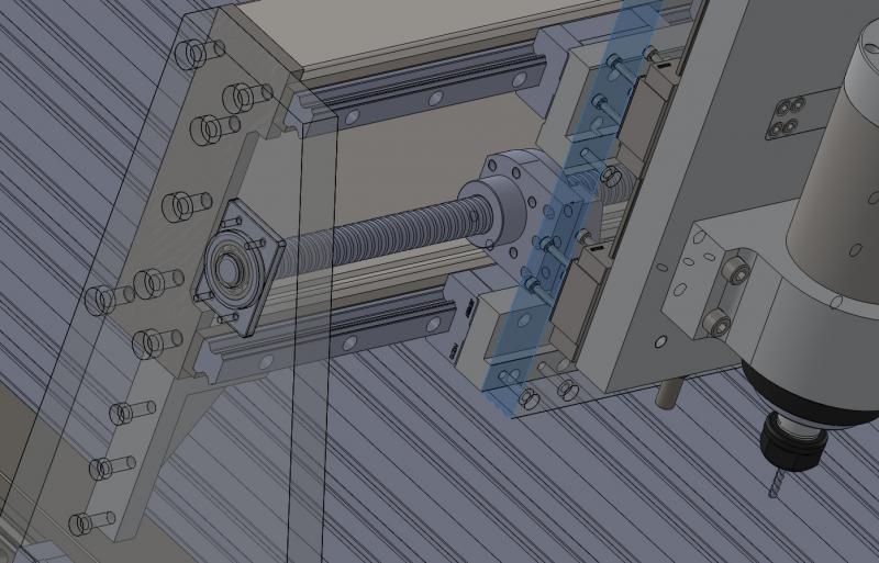 Смотрю на вариант оси Z, который был одобрен к производству cncfiles.ru/photo/17128/?page=photo&id=17128 . Сейчас нарисовал аналогичную ось, но думаю, имеет незначительный смысл поменять местами рельсы и каретки дабы стружка и пыль, меньше попадали в каретку при поднятии рельсов.