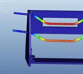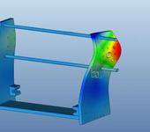 по вашей картинке нагрузка на вторую боковину только через стенку передается, первая боковина работает как консоль, для реального моделирования, думаю в условие должно быть передача нагрузки еще через направляющие.