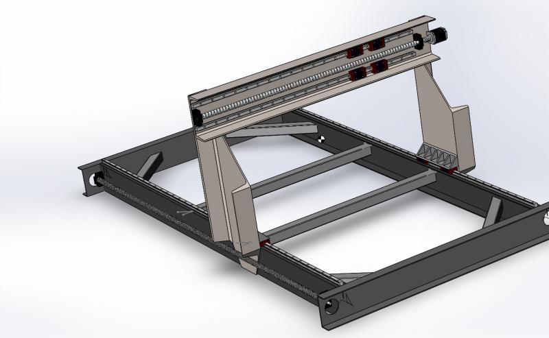 Если говорить о моментах, то как раз в перпендикулярной плоскости (плоскость XZ) с моментами все в порядке. Их там вообще нет. Смотря по тому, в какую сторону движется портал, нижние каретки прижимаются к своему рельсу, а верхние отрываются от своего рельса, или наоборот. Вот если бы на портале стоял только один рельс с двумя жестко закрепленными на суппорте каретками, тогда да. На обеих картеках был бы опрокидывающий момент. Но его воспринимали бы ровно по половине шариков в каждой из этих двух кареток, что лучше, чем всего два шарика. Правда, эти два шарика работают на довольно большом плече, что хорошо. Но хуже, чем если шариков было много на таком же большом плече. А многим шарикам в гипотетической схеме закрепления суппорта только на двух каретках на одном рельсе, пришлось бы работать на очень малом плече, что совсем нехорошо.
