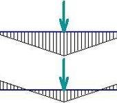 Стрела прогиба определяется изгибной нагрузкой. На рисунке показаны эпюры изгибающих моментов, построенные на растянутых волокнах балки для двух случаев ее опирания при одинаковой нагрузке в пролете. Во втором случае картина изгибных нагрузок много благоприятнее, чем в первом. Следовательно, стрела прогиба при одинаковой нагрузке будет здесь существенно меньше. А при одинаковой стреле прогиба, балка будет нести существенно большую нагрузку.