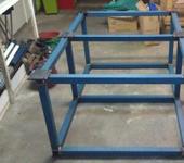 Станочная рама, сварная, размерами 1600х1150х720. Рама сварена из стального профиля 50х50х3. Вес получился 56 кг. Вес расчетный, естественно я раму не взвешивал. Общий вес станка по прикидкам перевалит за 150 килограмм. Таскать такую бандуру по мастерской, да еще в одиночку, удовольствие ниже среднего. Поэтому решил поставить раму на комбинированные опоры (колеса и регулируемые опоры в одном флаконе). Через пару дней выложу фотки.
