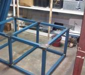 Две сварные рамы (стальной профиль 65х65х3) устанавливаются на шпильках (м10) на бетонное основание (пол в гараже). После предварительной нивелировки соединяются поперечными профилями (стальной профиль 65х65х3) болтами м10. На верхние посадочные пятки сварных рам болтами м10 прикрепляются стальные профиля (профиль 125х75х5).