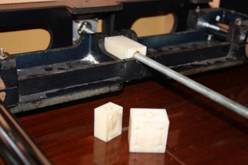 у меня гайки под шпильку строительную но думаю разноцы нет. делал так к подвижной части крепил фанерный упор к нему на блинных винтах такой же упор но не крепил его к подвижной части. гайку навинчивал на шпильку и зажимал между этими двумя деталями, в упорах естественно отверстия для шпильки. зажимал так чтобы гайка могла найти оптимальное положение, потом затягивал.