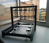Для таких малых размеров поля, на мой взгляд, проще и жестче выходит схема с подвижным по оси Х столом. Да и движки NEMA23 - перебор. У меня под A3 вполне по дереву и пластику справляются самые маломощные NEMA17. Ну, разве что они уже есть в наличии!