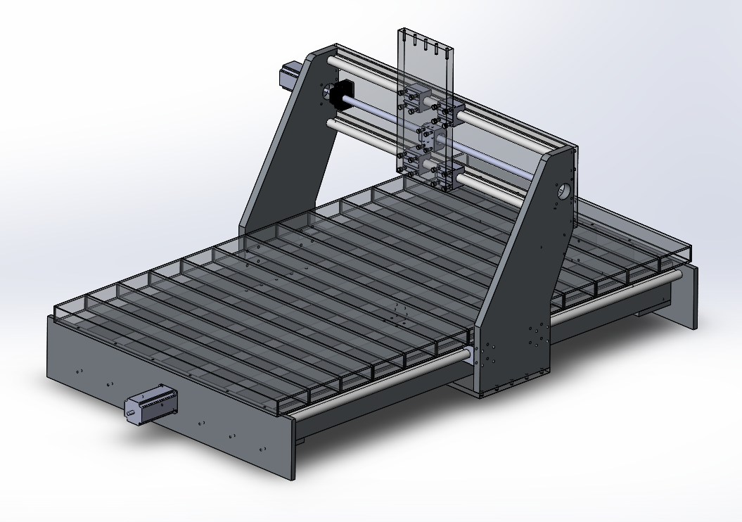 Все детали рамы и портала планируются из Д16 толщиной 12мм. Общие габариты станка (по рельсам) 1м х 1м (пляшем от того, что есть), по всем осям ШВП1605, по осям Х и Y - рельсы SBR20, по оси Z - цилиндрические направляющие Ф12мм. Движки - Nema23 18 кг*cм.