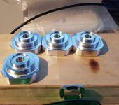 Сегодня резал грубо контуры заготовок регулируемых ног стола в доске 20мм. Материал 6061, заглубление 1.5мм, фреза 4мм 1 зуб, обороты 20000, подача 1400мм/мин.