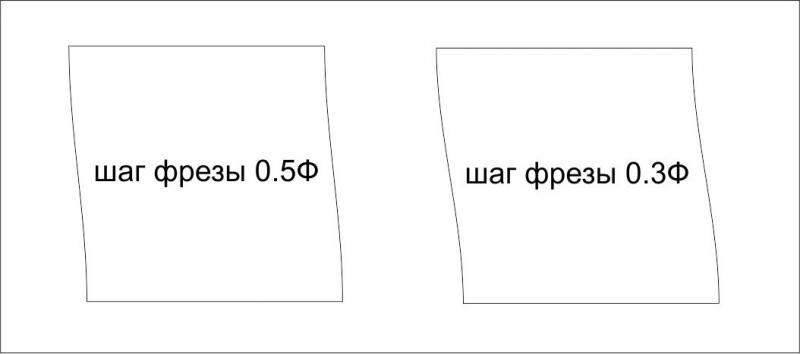 Блин, форум картинку перевернул… Правая часть должна быть снизу… В общем так, я сделал 3 УП с растром 0 градусов(снизу), 45 градусов(в середине) и 90 градусов(сверху). Результат очевиден… Мало того, что оно ромбиком, и ромбик поворачивается вместе с растром, так еще и по Z самозаглубился…) Причем везде одинаково и строго в направлении перпендикулярном растру…