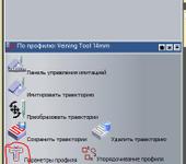 Когда у Вас будет готова траектория, открываете ее плюсиком и выбираете, снизу (или где оно у Вас) появится контекстное меню именно для этой траектории, выбираете Параметры профиля…