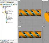 Пробовал в Рино делать обработку вдоль заготовки по кругу получилось примерно 23:59:00