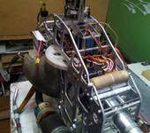 Всем привет! Давно не писАл. С крайним проектом, тем что с Зеноах 23сс, ничего не получилось. Жуткие вибрации. Навесные элементы на плате Киллсвича срывало от вибрации, несколько раз ломалась ось ХВ. Даже калёная ось от отвёртки не выдерживала. Там была ещё куча проблем, короче с одним цилиндром лучше не связываться. Решил поапгрейдить первый вариант. В место костыля на заднице сделал элегантный (как мне кажется) плавничок. В таком варианте он получился очень жёстким, резонировать не будет. Сделал новую плату пауэр бокса. Максимально возможно увеличил муфту сцепления с D-60mm до 75mm. Старая пробуксовывала. Поставил новый пул-стартер (лёгкого запуска). Оказывается есть и такие, а я и не знал. Это когда шнурком вращаешь не коленвал, а взводишь пружину, а уже через неё происходит вращение коленвала. Из-за бОльших габаритов стартёра пришлось пересмотреть новую раму аппарата, а за одно и изменить дизайн. Но тяжелый сцуко, сухой вес без лопастей 11.5кг.