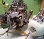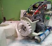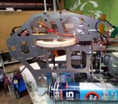 Всем привет! Давно не писАл. С крайним проектом, тем что с Зеноах 23сс, ничего не получилось. Жуткие вибрации. Навесные элементы на плате Киллсвича срывало от вибрации, несколько раз ломалась ось ХВ. Даже калёная ось от отвёртки не выдерживала. Там была ещё куча проблем, короче с одним цилиндром лучше не связываться. Решил поапгрейдить первый вариант. В место костыля на заднице сделал элегантный (как мне кажется) плавничок. В таком варианте он получился очень жёстким, резонировать не будет. Сделал новую плату пауэр бокса. Максимально возможно увеличил муфту сцепления с D-60mm до 75mm. Старая пробуксовывала. Поставил новый пул-стартер (лёгкого запуска). Оказывается есть и такие, а я и не знал. Это когда шнурком вращаешь не коленвал, а взводишь пружину, а уже через неё происходит вращение коленвала. Из-за бОльших габаритов стартёра пришлось пересмотреть новую раму аппарата, а за одно и изменить дизайн. Но тяжелый сцуко, сухой вес без лопастей 11.5кг.