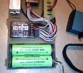 Это первый пробный запуск, проверка всех систем. Питание борта LiFe, сервы Футаба 5 вольтовые, запитаны через гасящий диод КД213.