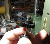 Есть ещё один,и все в этом месте-не совпадающие по высоте шестерни 😃 .Решение простое,необходимо выбить немного фиксирующий штифт-он развальцован с обеих сторон,срезать примерно 0.5 мм развальцовки и выбить его в противоположную сторону,снять шестерню с вала. Затем практически вплотную к цилиндрической шестерне просверлить новое отверстие сверлом 1.7-1.8 и собрать все на красный локтайт.