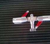 Порадовал узел авторотации - по обе стороны обгонки по подшипнику - для 450 на мой взгляд - круто. Хитро реализована качалка хвостового слайдера - 2 рычага. Глядя на картинку не разобрался как он работает. На практике же - все просто и на мой взгляд, правильно - усилие на слайдер передается строго вдоль оси ХР. Порадовал и сам хвостовой кейс - цельнофрезерованный (красненький). Единственная неоднозначность с конструктивом крепления хвостовой сервы. Слишком она выдается за габариты - но для скептиков хитрые корейцы положили в комплект обычный балочный крепеж.